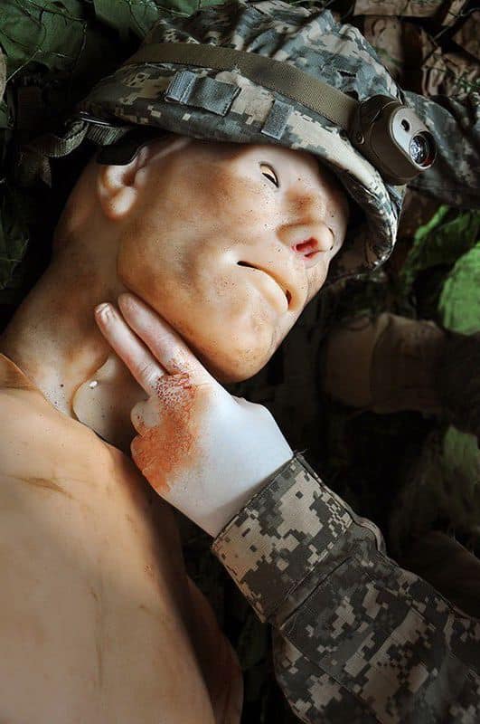 Grâce à des capteurs dans son bras et sa jambe, Hal répond à la pression appliquée et les saignements s’arrêtent lorsque le garrot est appliqué correctement.