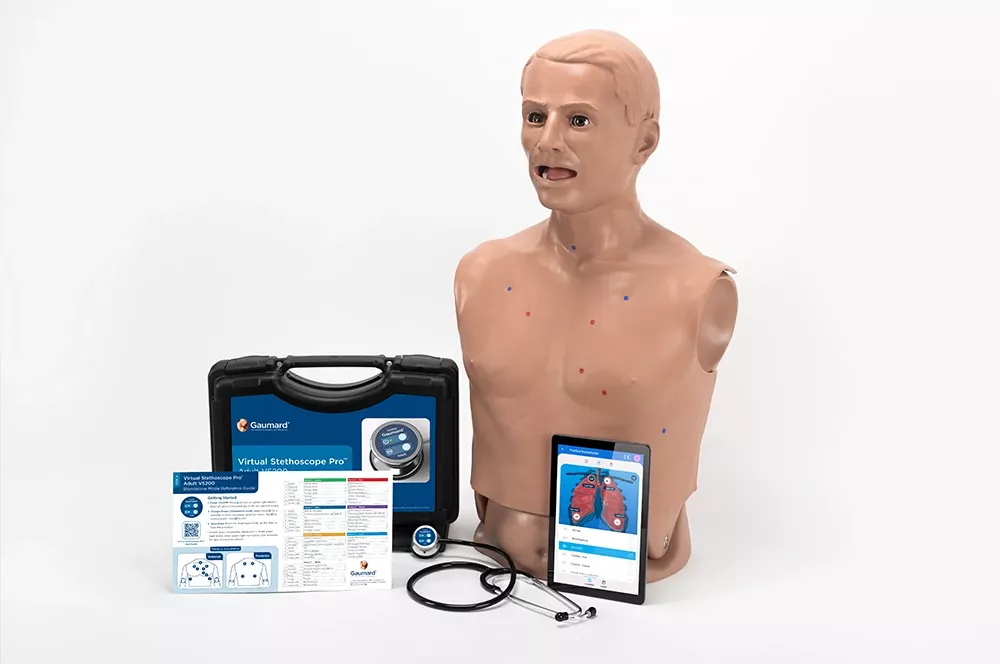 Accueil Nos produits Simulateurs procédurauxGaumard Simulateur d'auscultation pour adultes avec stéthoscope virtuel Pro™